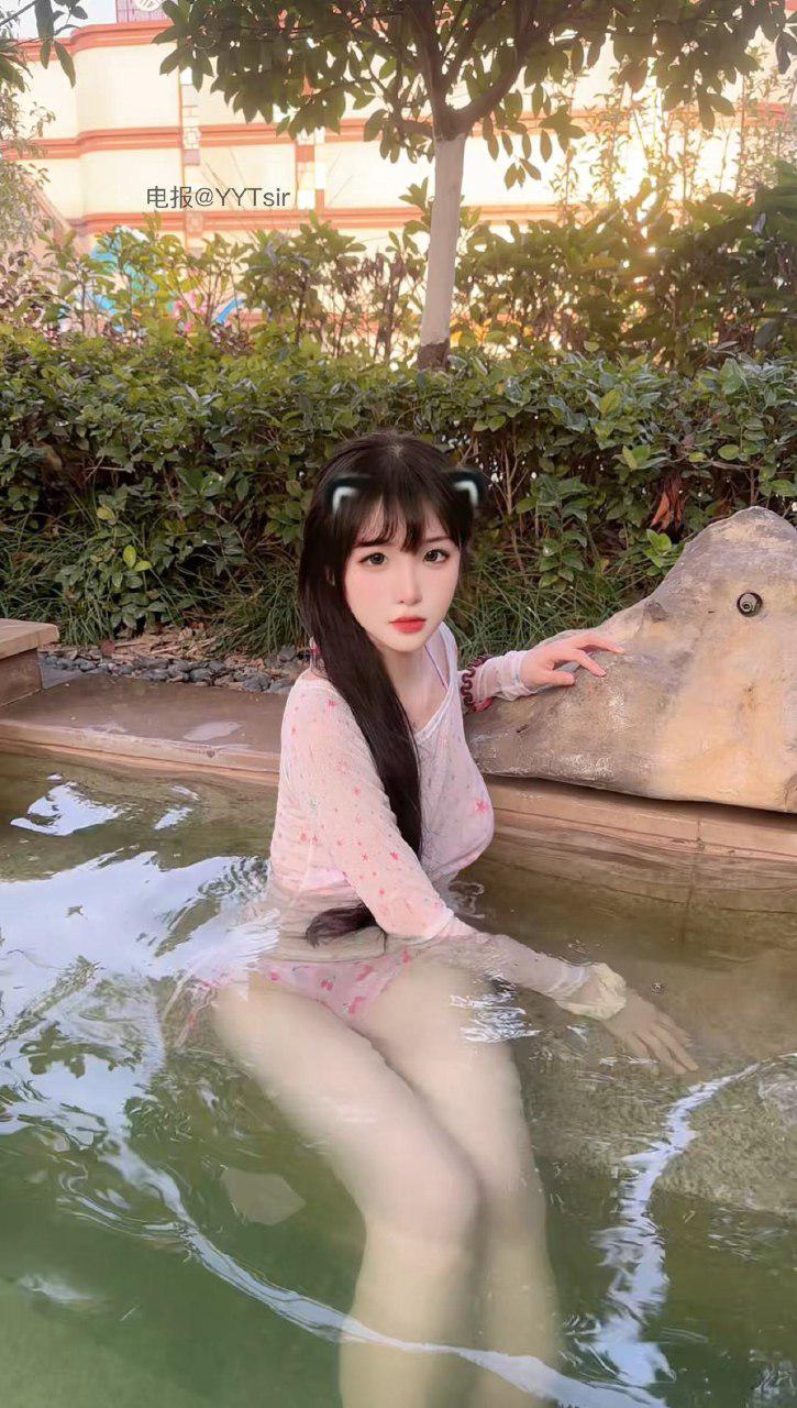 内容:泳池系列的皓月送给超粉哥哥😍粉色👙比基尼套装户外摆拍❤️纯欲小女友😍谁见了能不爱😍